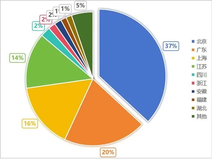 比如北京地方基金成為AI投資賽道中最活躍的一方,這讓北京的AI融資佔比近四成,2024年前8個月,北京共發生107起AI項目,佔37%,遠超廣東(58起,佔20%)和上海(46起,16%)。