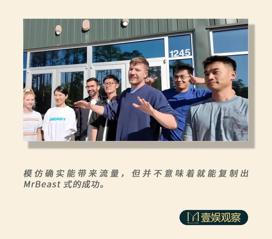 問題在於,模仿確實能帶來流量,但並不意味着就能複製出MrBeast式的成功。