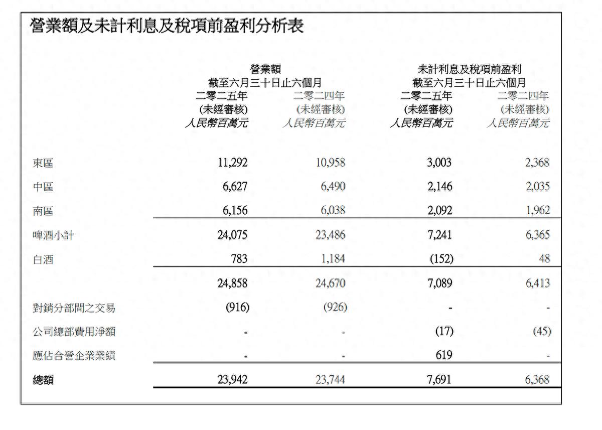上半年,公司啤酒業務銷量約648.7萬千升,同比增長2.2%,啤酒業務未計利息及税項前盈利為72.41億元,同比上漲13.7%。