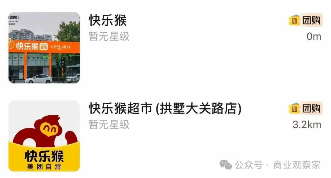 在美團APP與地圖上,杭州上線的兩家店分別是:《商業觀察家》早前報道過的拱墅大關路店,以及選址杭州米市巷湖墅南路186-1號場址的快樂猴店。