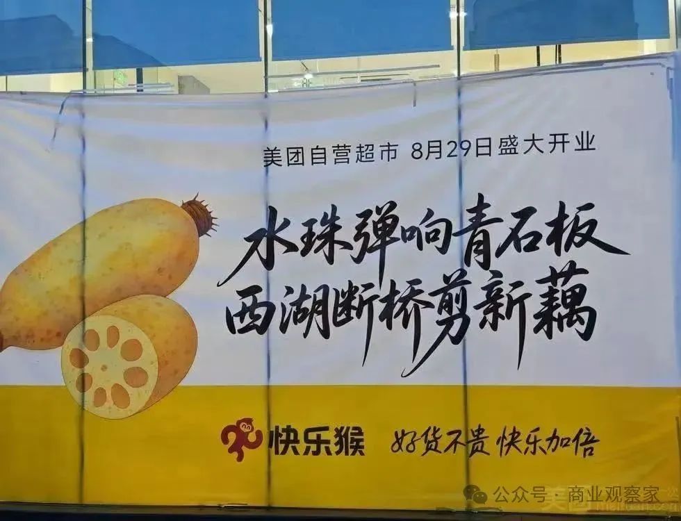 美團做的自營硬折扣社區超市——快樂猴這次將會如約於8月29日開出首店,不再延期。