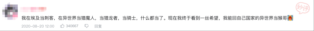 “我在埃及當刺客,在異世界當獵魔人,當獵龍者,當騎士,也已經回到自己國家的異世界當猴哥。現在我終於看到一絲希望,就是找回那個曾經夢想仗劍走天涯的自己。”
