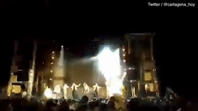 西班牙女歌手Joana Sainz在演出的時候,舞台上預先設置的煙火特效裝置突然發生故障,一枚本應射向空中的煙火“火箭彈”意外偏離方向,以巨大沖擊力直接擊中她的腹部。