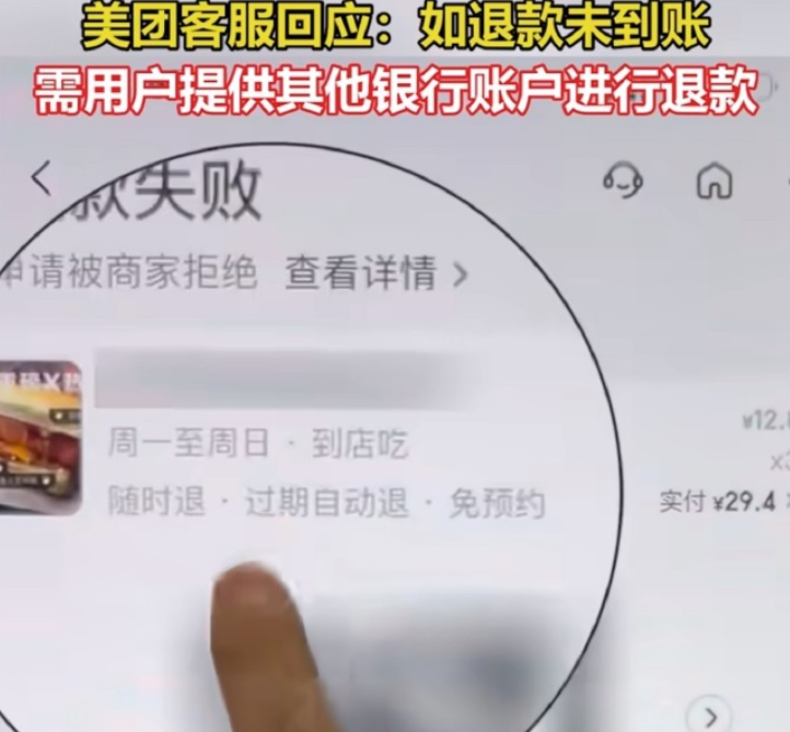 隨着質疑聲越來越多,美團客服出來解釋説,退款都是原路退回的,但要是支付賬户異常或者被註銷,退款就回不去了,這時候就得用户提供其他銀行賬户來退款。