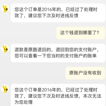 根據網友們的反饋,狐妹總結了一下,歷史訂單退款未到賬在 2014 到 2018 年發生的頻率比較高。