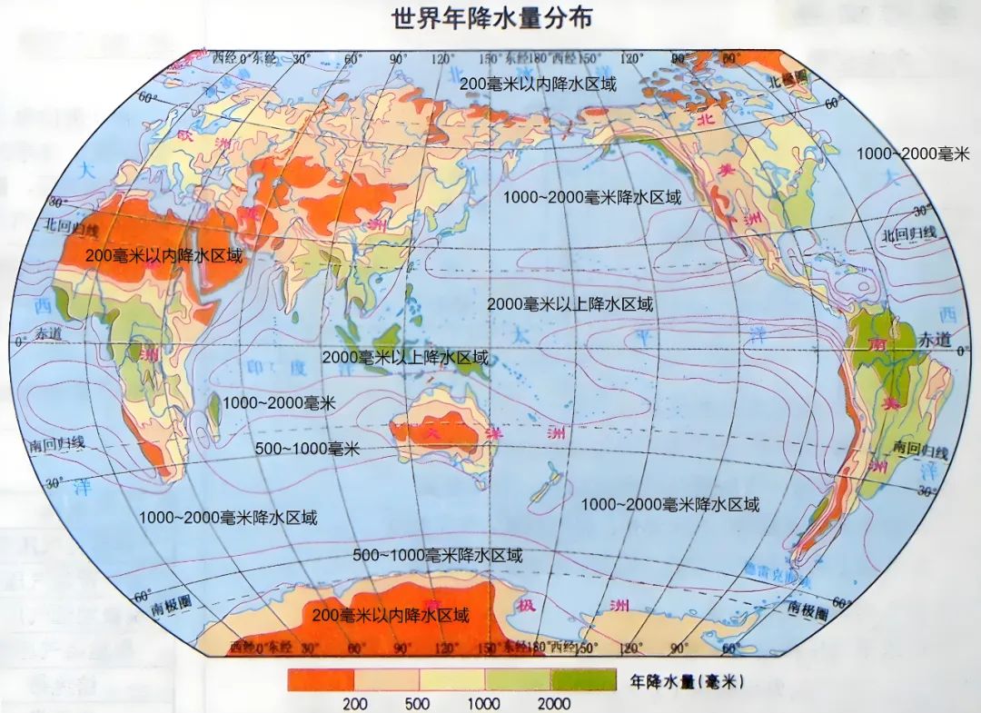 可以發現,世界的降雨一般都是越靠近海邊越多,越往內陸地區,降雨量越少。