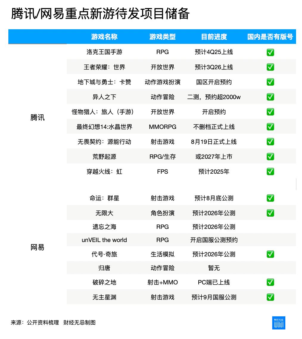 二是規模的差異化,騰訊在長青遊戲和潛在長青遊戲的儲備上,明顯領先於網易。