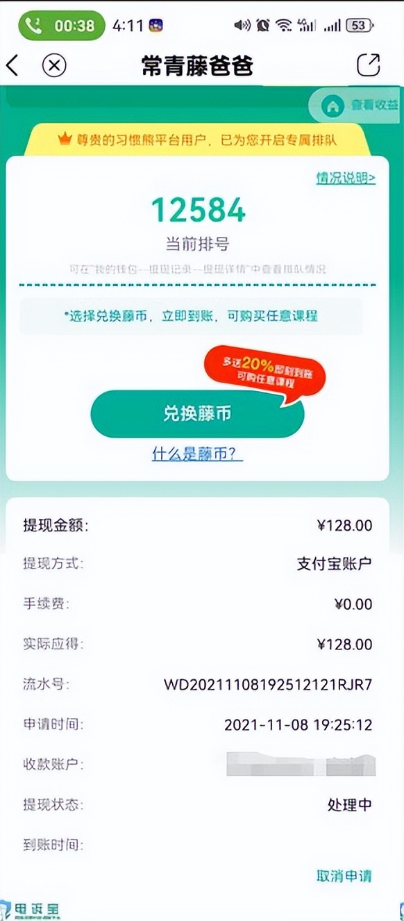 4月22日,劉女士向“電訴寶”投訴稱其於2021年5月16日在常青藤爸爸APP購買“動畫版親子英文課打卡返現課”,並於同年10月19日完成所有打卡任務並提交返現申請。然而,截至2025年7月,提現申請仍處於排隊狀態,平台顯示前方尚有4760人等待處理,且四年間排隊進度幾乎無變化。用户多次聯繫客服,均被以“需排隊”為由敷衍推諉,未提供具體返現時間表或合理解決方案。用户認為平台利用無限期排隊機制惡意佔用資金,涉嫌虛假宣傳及欺詐消費者,要求常青藤爸爸立即履行返現承諾,並呼籲監管部門介入調查,防止更多消費者權益受損。