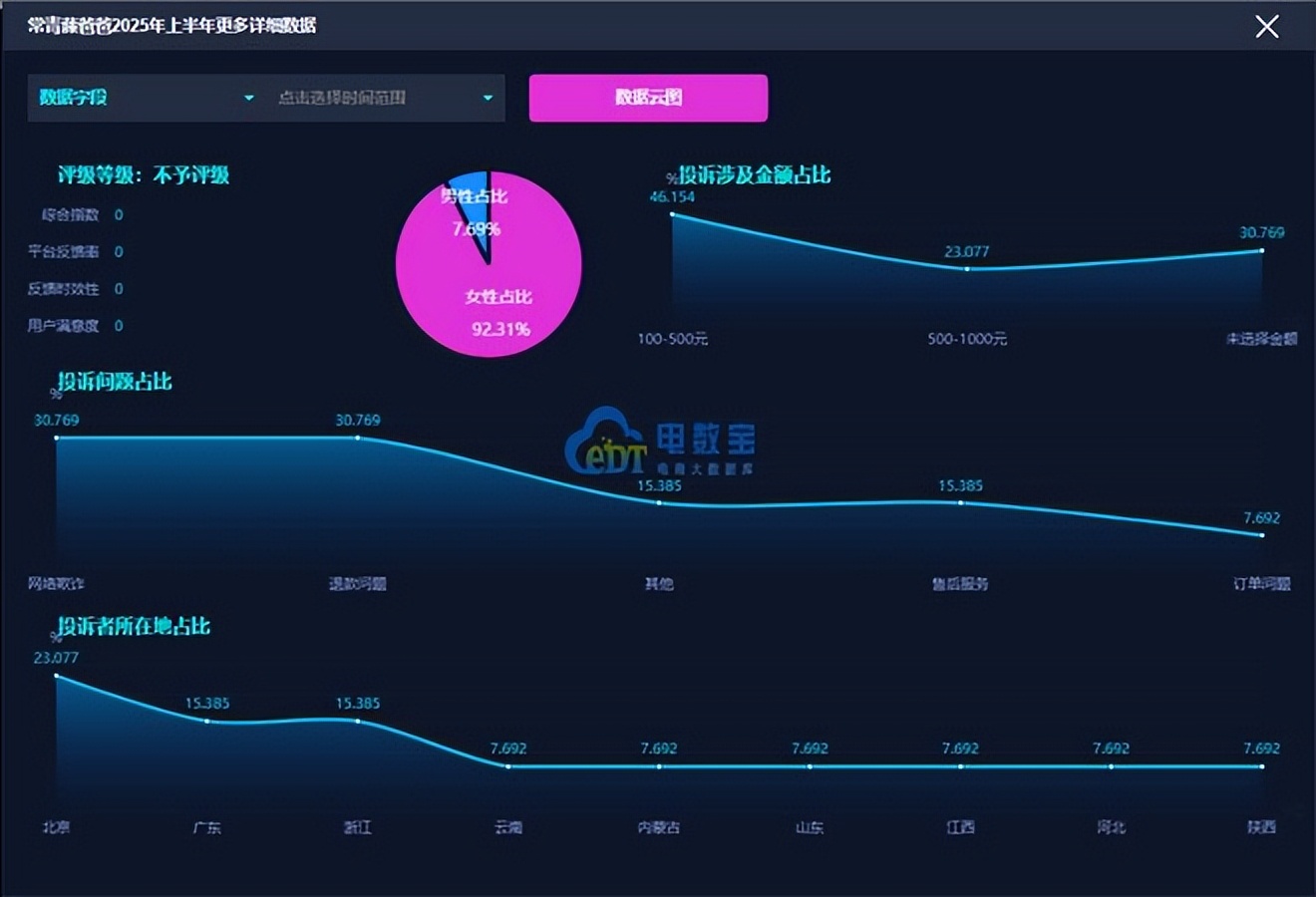 據網經社旗下電商大數據庫“電數寶”監測數據顯示,常青藤爸爸2025年上半年投訴的問題主要包括網絡詐騙、退款問題、售後服務等,其中網絡詐騙佔比最高,達到了約31%。
