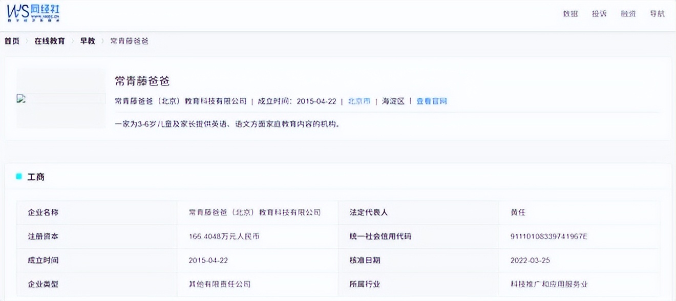 據網經社企業庫顯示,常青藤爸爸是常青藤爸爸(北京)教育科技有限公司,法定代表人為黃任。