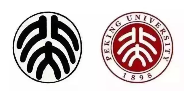 (左圖為魯迅設計的初版北大校徽,右圖為北大,2007 年以魯迅設計為基礎啓用的校徽)