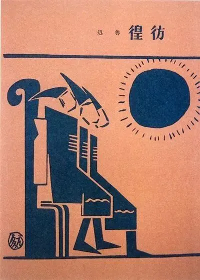 《彷徨》封面由魯迅設計,陶元慶繪畫,底色橙紅,用了幾何線條畫三人呆坐椅上,面對着一輪圓而不圓、顫顫巍巍的深藍色太陽,於百無聊賴中晃悠;