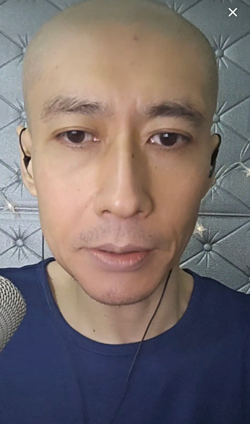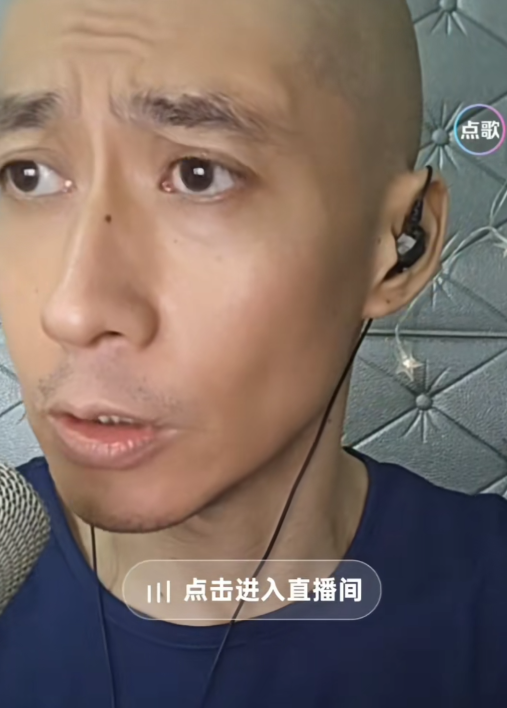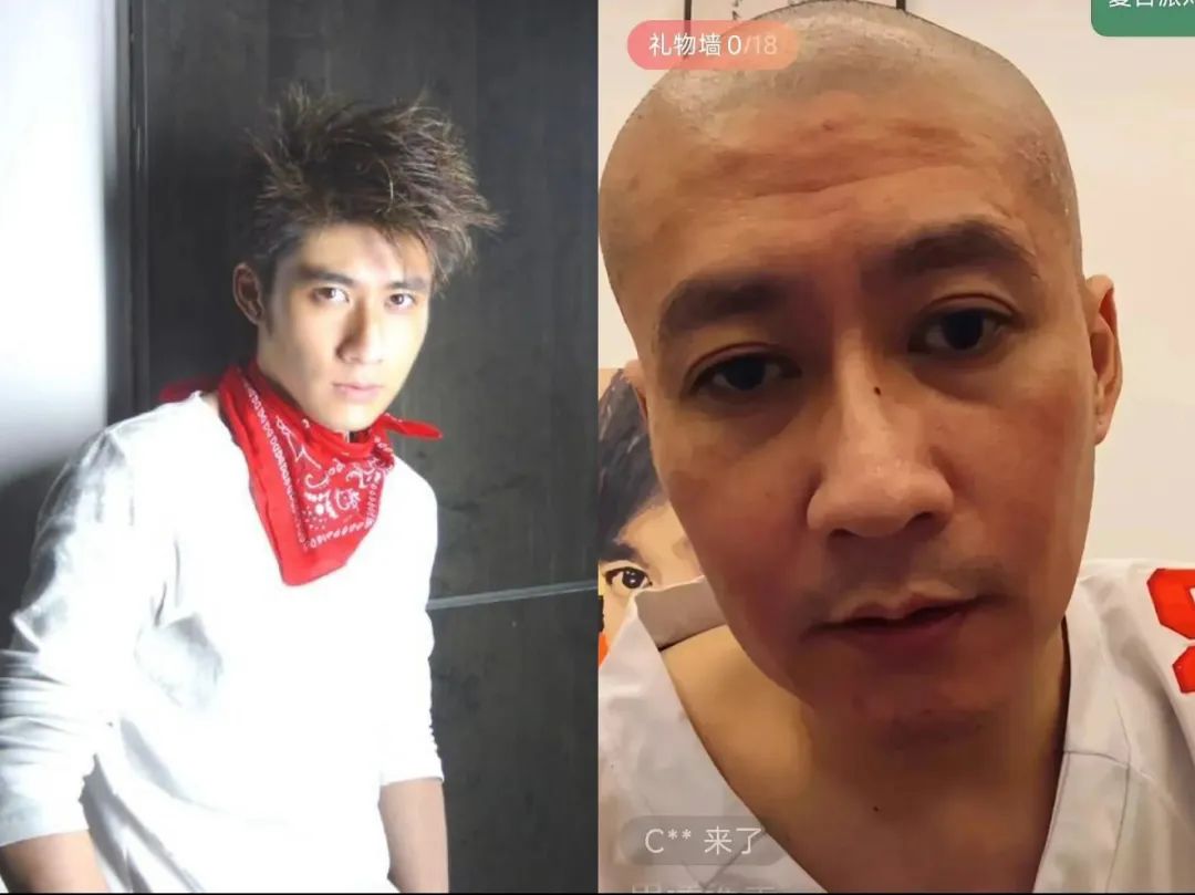 今年43歲的他在直播中,瘦到脱相,眼神疲憊,髮型也變成了光頭,盡顯老態。