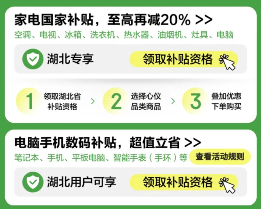 意思這些地區的消費者可能享受到 “ 國補 + 地補 ” 雙重優惠,就更香了……