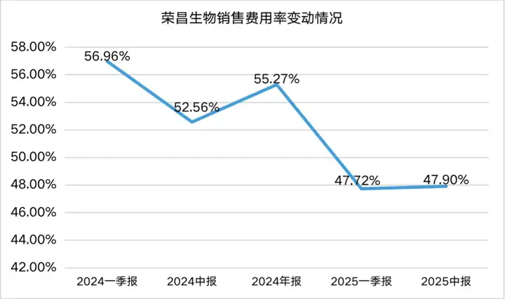 本次半年報,榮昌生物另一大亮點在於,其高增長並不是以增加銷售費用投入為代價換來的。