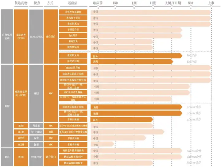 BD更是持續破局。其與Vor Biopharma達成42.3億美元合作,泰它西普成功“出海”;隨後又牽手全球眼科巨頭參天製藥,將RC28-E價值最大化。