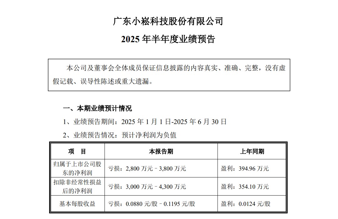 另外,小崧科技上半年預虧2800萬-3800萬元,同比暴跌808%至1062%。該公司稱,持續縮減工程施工業務規模和市場競爭加劇導致訂單減少。