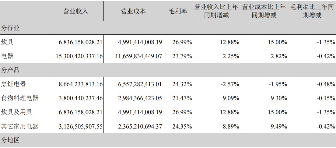 蘇泊爾則是在品類上有點“偏科”,一直靠炊具和小型廚房電器撐着,像空氣炸鍋、掃地機器人這些熱門品類聲量一直不大,現在傳統品類增長乏力,有點被動。