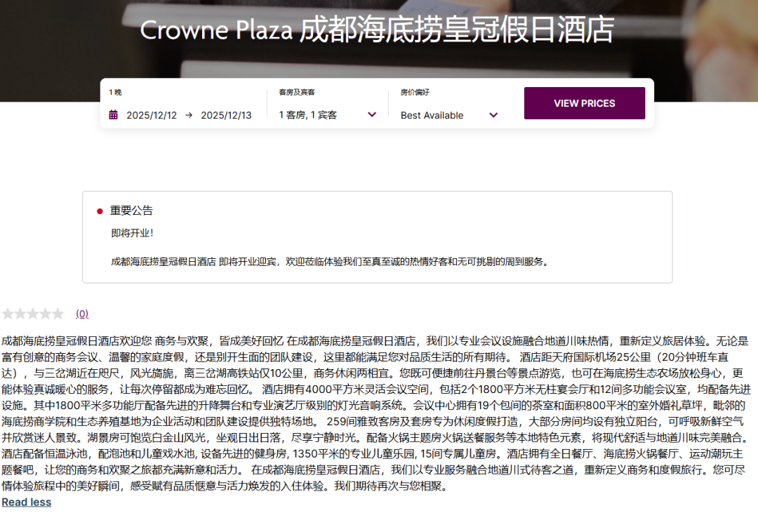 所以我們看到,成都海底撈皇冠假日酒店選擇的是火鍋+會議+親子的組合模型,既保留了皇冠假日原本的商務屬性,又疊加了極具辨識度的火鍋場景與親民化服務。