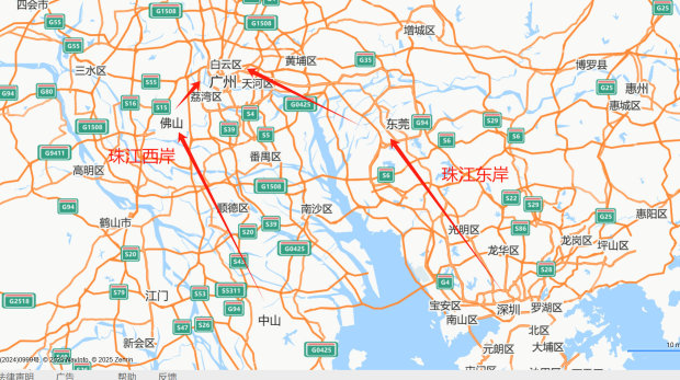 上台的地理區域主角是兩個。一個是珠江東岸,從廣州-東莞和深圳。一個是珠江西岸,從廣州-佛山到中山。