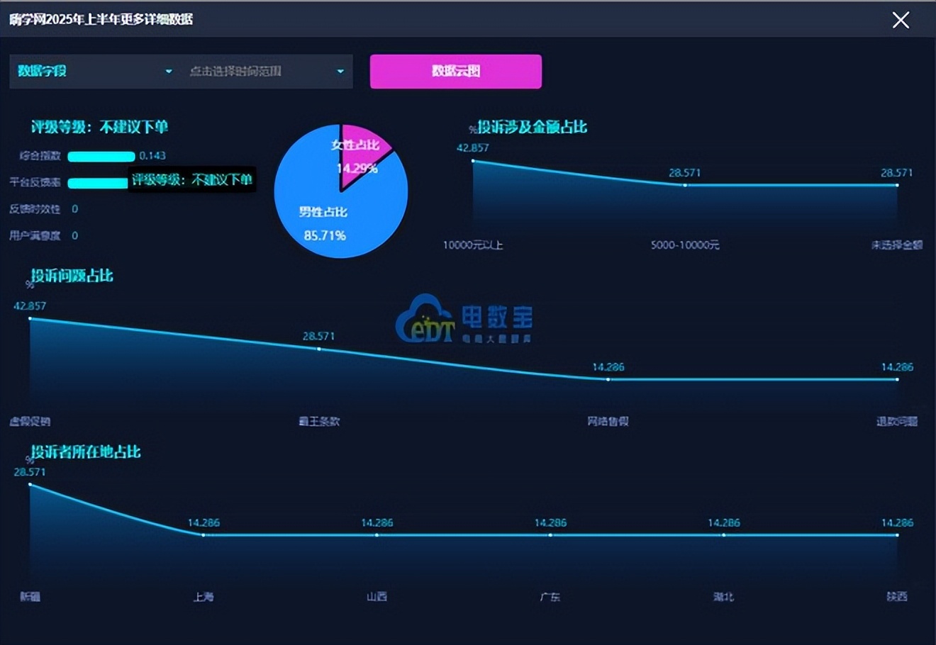 據網經社旗下電商大數據庫“電數寶”監測數據顯示,嗨學網2025年上半年投訴的問題主要包括虛假促銷、霸王條款、網絡售假、售後服務等,其中虛假促銷佔比最高,達到了約43%。