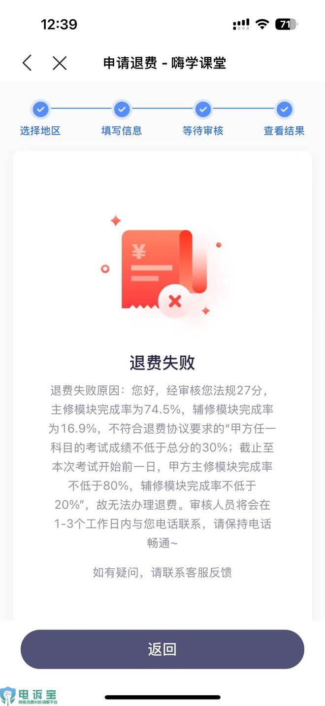 【案例四】用户投訴“嗨學網”以“全額退款”誘騙購課後拒退費