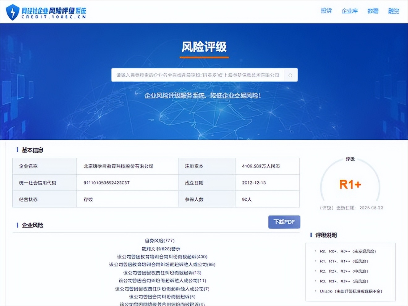 據“網經社企業風險評級系統”顯示,嗨學網隸屬的北京嗨學網教育科技股份有限公司的風險評級為R1+,公司目前所處低風險。