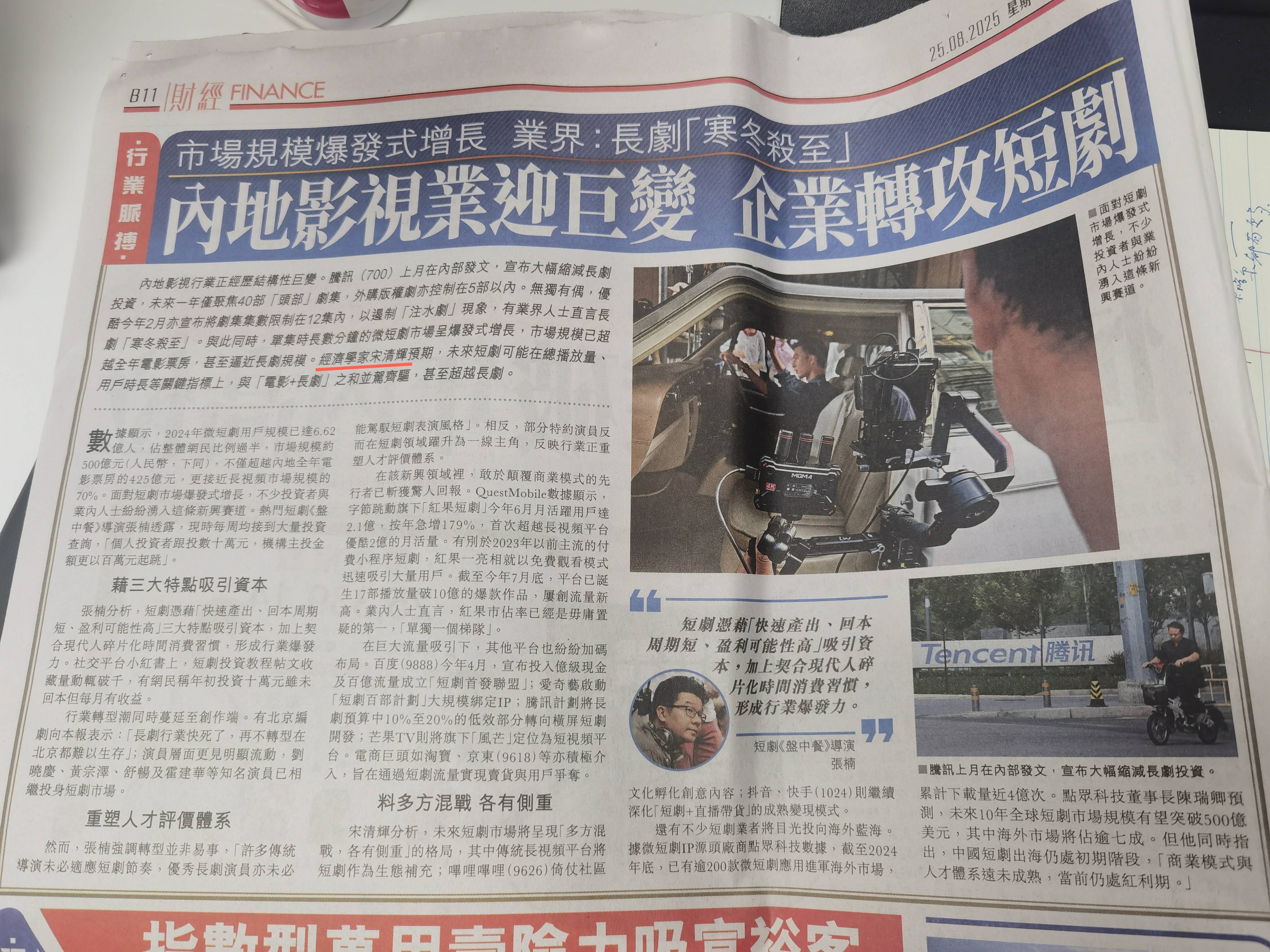 內地影視行業正經歷結構性鉅變。騰訊(700)上月在內部發文,宣佈大幅縮減長劇投資,未來一年僅聚焦40部「頭部」劇集,外購版權劇亦控制在5部以內。無獨有偶,優酷今年2月亦宣佈將劇集集數限制在12集內,以遏制「注水劇」現象,有業界人士直言長劇「寒冬殺至」。與此同時,單集時長數分鐘的微短劇市場呈現爆發式增長,市場規模已超越全年電影票房,甚至逼近長劇規模。著名經濟學家宋清輝預期,未來短劇可能在總播放量、用户時長等關鍵指標上,與“電影+長劇”之和並駕齊驅,甚至超越長劇。