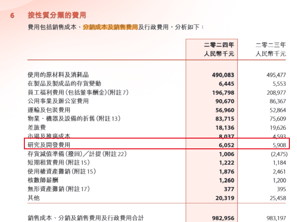 作為休閒零食老品牌,親親食品的研發費用並不算高。2024年,親親食品的研究及開發費用為605.2萬元。