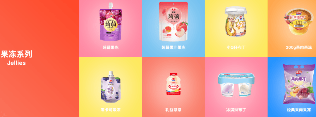 目前,親親食品擁有四大業務板塊,第一類是果凍產品。