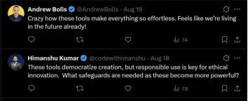 在這種邊聊邊開發工具的過程中,直面AI在這款由AI初創團隊做出的工具上,也看到了一些其他的可能性。