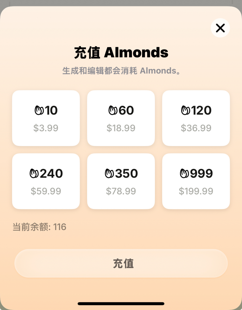 同時,直面AI也發現,在Macaron裏,聊天是免費的,創建應用、修改應用、獲取應用都需要消耗“杏仁”(類似積分),其創始人陳鍇傑這樣告訴直面AI,“你和朋友聊天都是免費的,但你如果需要讓朋友幫忙辦事,就要付些辛苦費。”