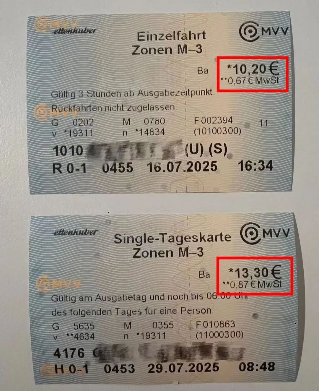這個票價着實驚到我了,如果坐公交車上班,當天往返至少需要13.3歐(買全天票可以打折)。