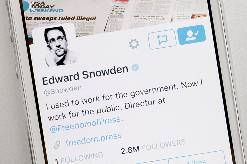 2013年泄露美國國家安全局(NSA)機密文件的愛德華・斯諾登(Edward Snowden),至今仍是數字時代 “舉報” 行為極具爭議的象徵人物。圖片來源:B. CHRISTOPHER / 阿拉米圖片庫(ALAMY STOCK PHOTO)