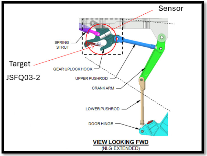 關於戰機起落架具體發生了什麼,報告解釋道:“前起落架上鎖鈎用於確保前起落架組件正確上鎖。上鎖裝置與前起落架艙門機械連接。”“前起落架處於上鎖狀態時,前起落架艙門作動器開始關閉艙門,將上鎖鈎提升至‘鎖定’位置。當上鎖鈎處於‘鎖定’位置時,艙門關閉,飛機準備進入完整飛行包線。