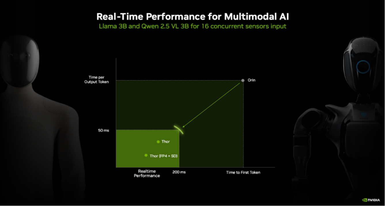 通過多傳感器輸入,NVIDIA Jetson Thor 進一步拓展了即時推理能力。通過 FP4 精度與推測解碼優化,其性能有望進一步提升。