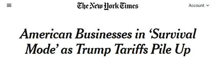 《紐約時報》的報道中寫道,1990年,梅創立了主營醫療病牀與車庫門設計的MFG Direct公司。在近幾個月特朗普政府一系列關税政策下,公司遭遇致命衝擊,梅擔憂公司可能難以維持60天。這位78歲的企業家表示,公司已進入“生存模式”:裁員、削減開支、全員每日工作12小時拓展客户。儘管暫時挺過危機,但公司仍面臨存亡考驗。“我們命懸一線,所有努力只為維持運營。”