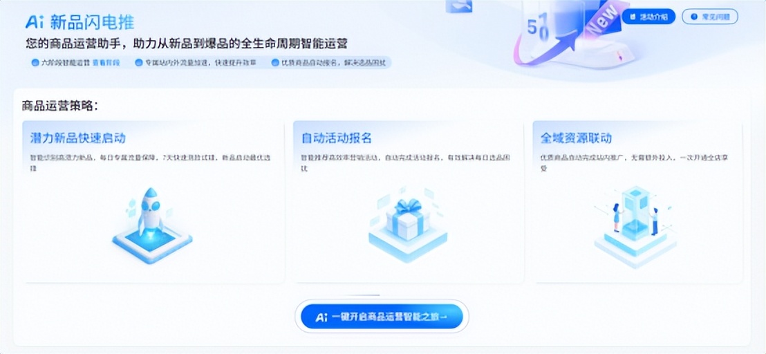 首先在選商品上,通過AI綜合大數據分析,篩選出最有潛力賣爆的新品,提升選品效率;其次在定策略上,AI能精準測算前期什麼折扣力度更容易出單又賺錢;另外在報活動方面,AI可自動分析活動規則並直接報進最適合的營銷活動;最後是找流量,AI把站內外資源整合、粉絲運營、社交媒體投放全域覆蓋。