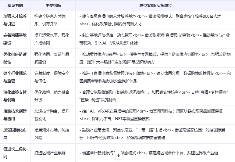 針對江蘇省直播電商行業發展面臨的挑戰,提出以下建議:
