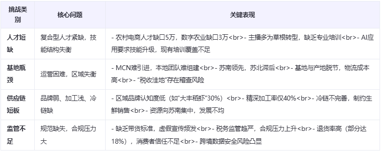 **專業人才不足:**直播電商需要既懂直播運營又懂供應鏈管理、數據分析等多領域知識的複合型人才。目前,江蘇省這類人才較為稀缺,企業難以快速組建專業的直播團隊。孫鐳表示,“想快速地組建20多人的跨境電商團隊,在江蘇不太容易,而在廣州一個月之內就能完成”。