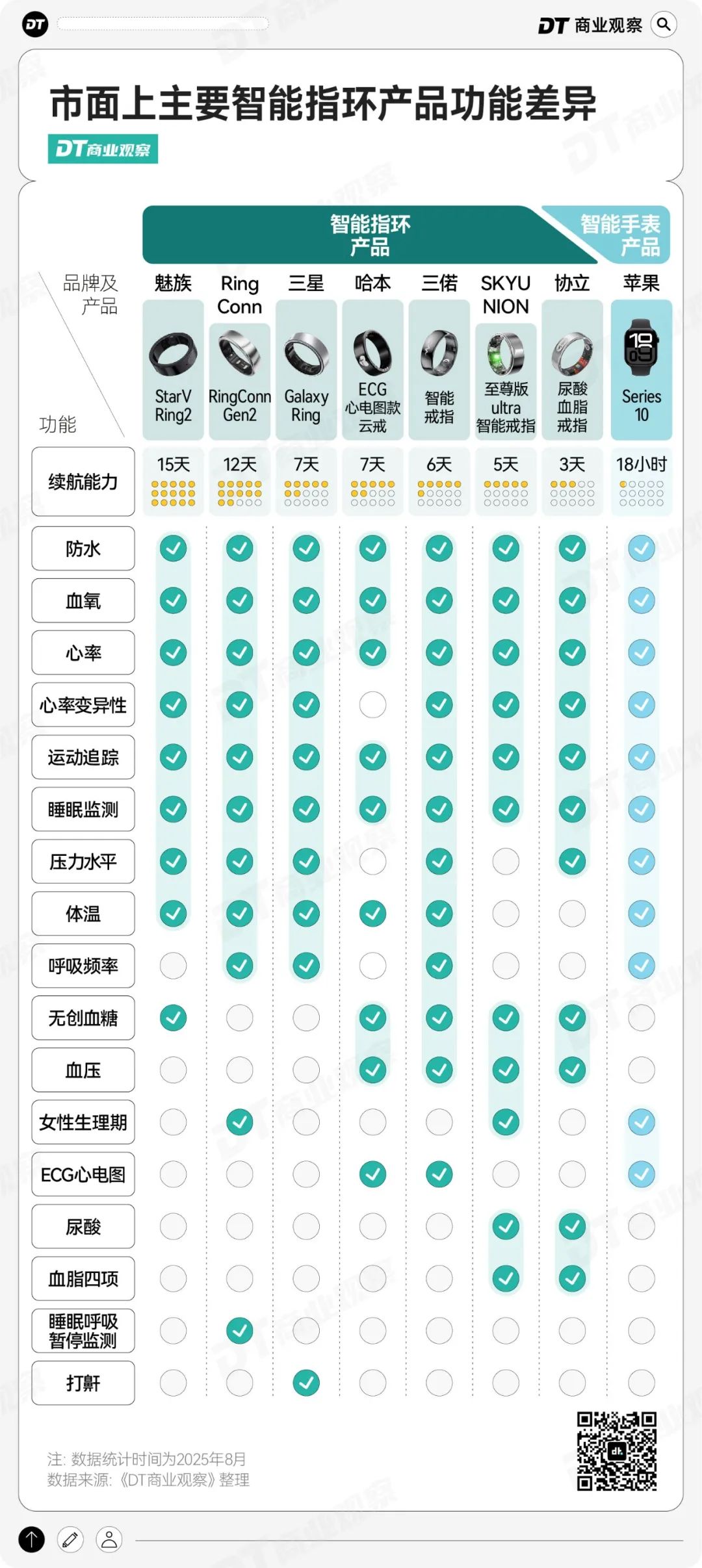 《DT商業觀察》梳理發現,智能指環的競爭力,可能並不在於取代智能手錶,而是在智能手錶覆蓋不到的地方找到了自己的位置。