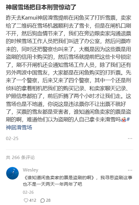更誇張的是今年2月,有幾位中國遊客在日本神居滑雪場,他們稱提前通過閒魚購買了所謂打折雪票。