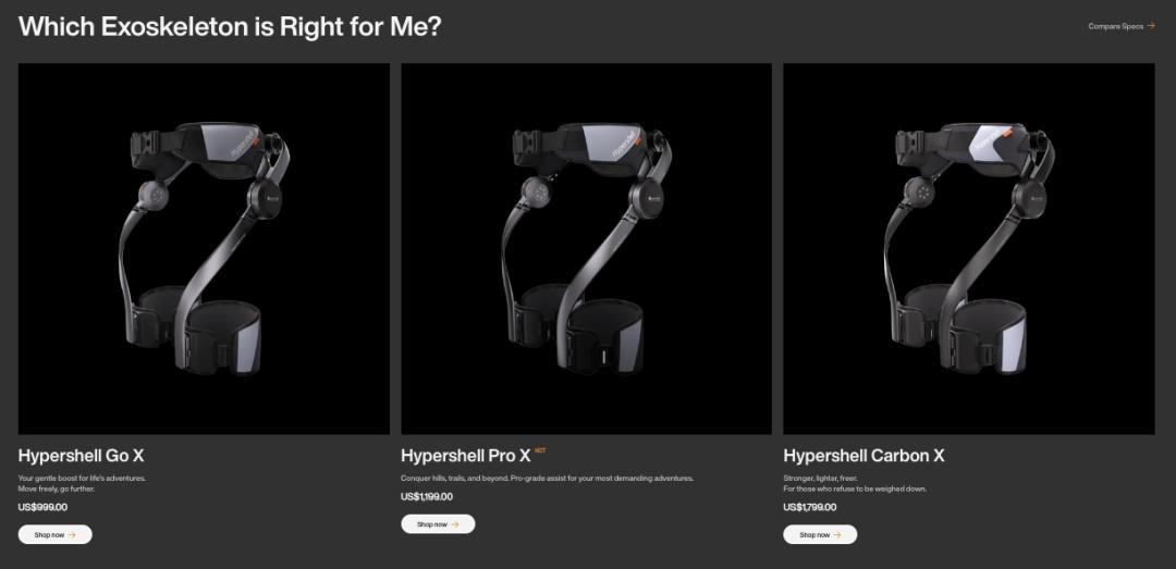 目前,Hypershell有基礎款Hypershell Go X、功率更高的Hypershell Pro X,以及Hypershell Carbon X共3款產品在售,差異點在於材質和功率。此前,始祖鳥也為户外登山愛好者做過消費級的可穿戴外骨骼,但去年開始接受預定的始祖鳥MO/GO,預計到今年10月才能發貨;價位上,最便宜的早鳥預售價也得4500美元( 摺合人民幣 3.3 萬元 ),即使是租8小時體驗一下,也要近600元人民幣。而Hypershell最高配的產品,價位也不過是始祖鳥的一半左右,而且已經開始向用户發貨。