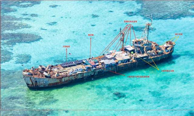 最為關鍵的是,菲方還在甲板上重新建造了一個臨時性鐵皮建築,安裝了太陽能板和風力發電機,配備了一些雷達、衞星通訊設備,甚至還有電視、卡拉 OK 等娛樂設施。