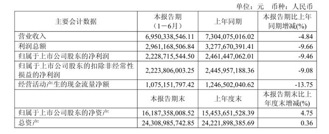 8月25日,今世緣發佈2025年半年財報,報告顯示,公司上半年營業收入為69.50億元,同比下降4.84%,歸母淨利潤為22.29億元,同比下降9.46%。扣非歸母淨利潤為22.24億元,同比下降9.08%,基本每股收益1.79元。