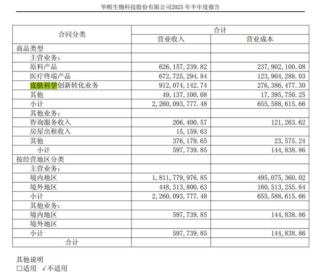 財報中,華熙生物把業績下滑歸咎於“皮膚科學創新轉化業務收入調整”,可從數據看,這哪裏是“調整”這麼簡單?