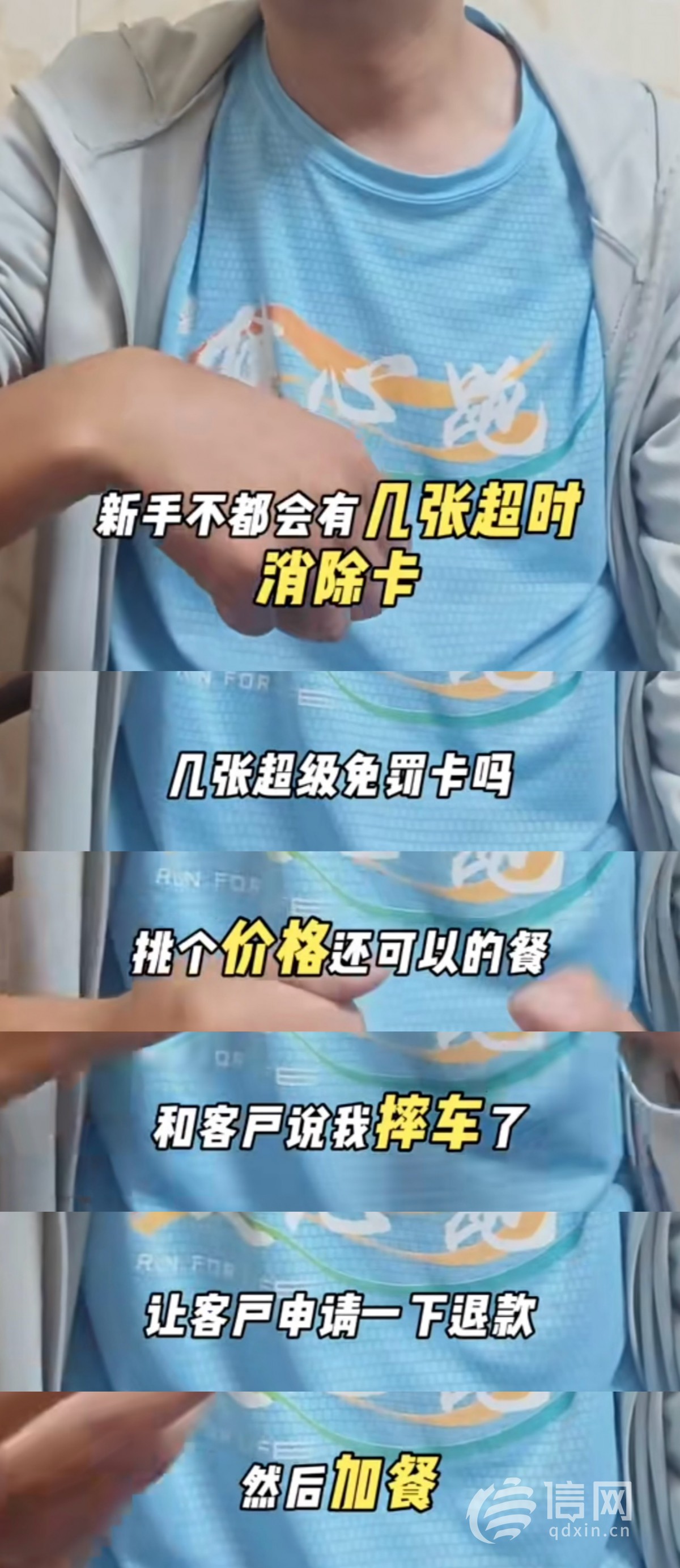 近日,有網友向信網轉發了一條視頻,據瞭解,該視頻中的博主是一名美團眾包平台旗下的外賣員,他發佈的1000多條視頻中多以“外賣日記”為主題。其中有一條視頻轉發量高達500餘次,視頻中,該博主通過分享“鑽規則空子”的技巧吸引流量,他詳細描述瞭如何利用外賣平台給予新註冊騎手的“超級免罰卡”來規避處罰,教唆網友以“路上摔車”“餐被偷了”等理由為藉口,故意吃掉顧客的高價餐品。
