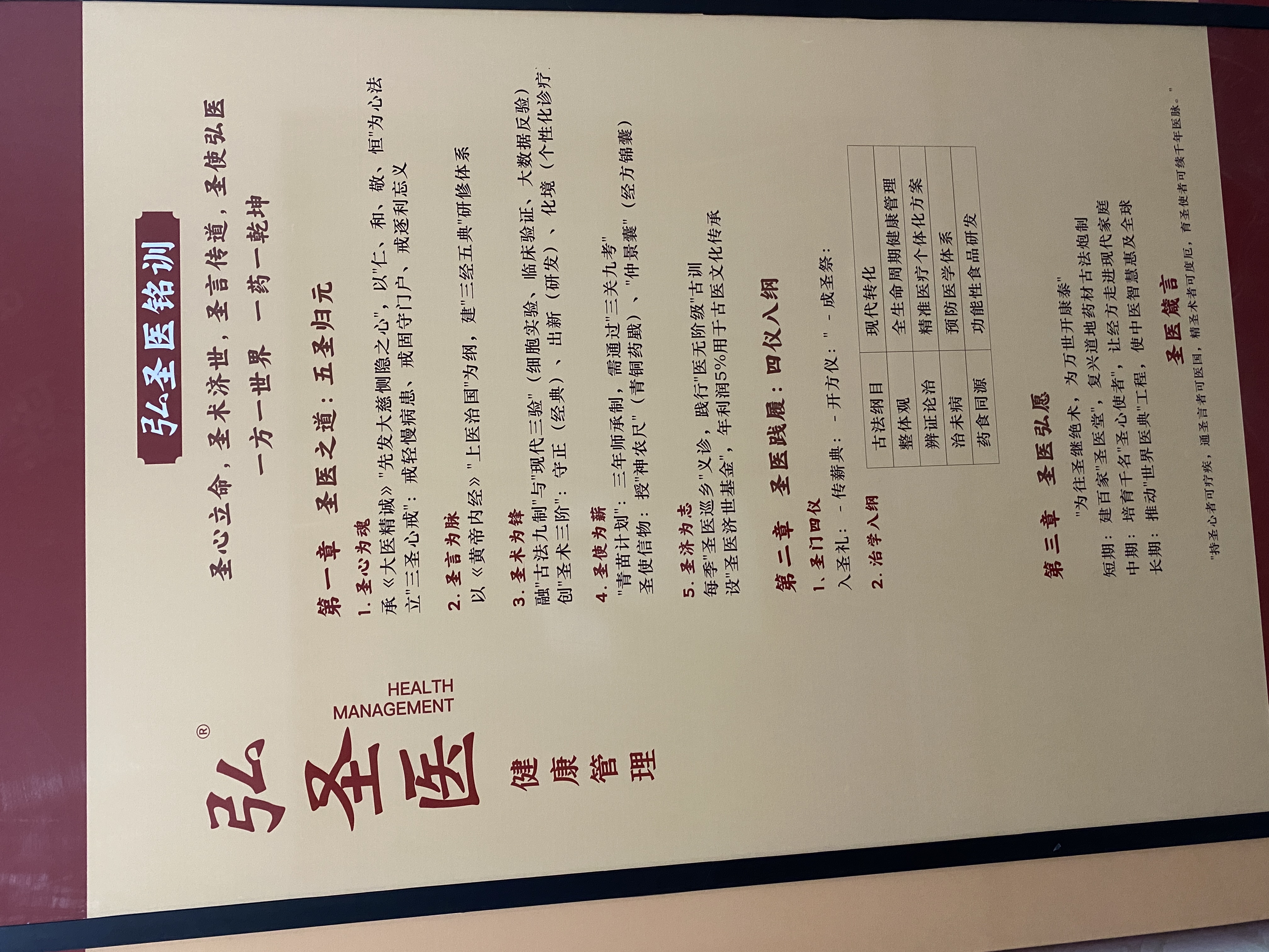 弘聖醫以“弘聖醫文化憲章”為精神指引,秉持“立聖心、踐聖言、精聖術、育聖使、濟天下”理念,錨定“聖道承啓,醫澤蒼生”使命。“聖心立命,聖術濟世,聖言傳道,聖使弘醫;一方一世界,一藥一乾坤”的銘訓,將中醫藥文化傳承融入發展基因,讓千年中醫藥智慧在現代社會找到傳承支點,為中醫藥人才培育築牢文化根基,使從業者從心底敬畏、傳承中醫藥文化精髓。