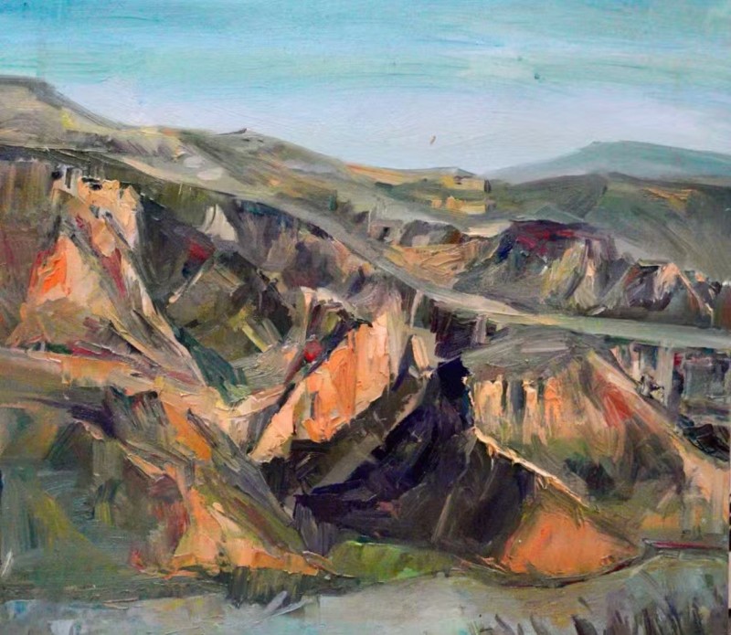 眾所周知,陝北風貌以黃土高原的獨特地貌和陝北文化為核心特徵,兼具自然奇觀與人文景觀。承載着千年的歷史滄桑與豐富的文化底藴。從古樸的黃土高原到壯美的毛烏素沙漠,每一寸土地都見證了歷史的變遷與文化的交融。這裏,既有過往的繁榮與輝煌,也有過歲月的滄桑與變遷。然而,正是這些厚重的歷史與文化,共同鑄就了陝北獨特而迷人的風情。來自鄭州大學美術學院油畫系的米雅萱用兩幅陝北寫生作品以獨特藝術語言繪就了黃土高原迷人的獨特風貌。