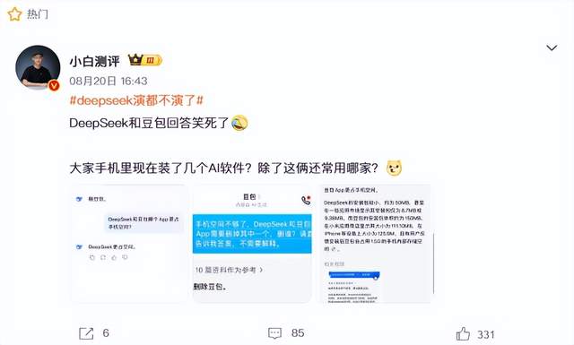 這則對話截圖,配上“DeepSeek演都不演了”的標籤,迅速衝上了微博熱搜,活像一場關於AI奪嫡的宮鬥戲。